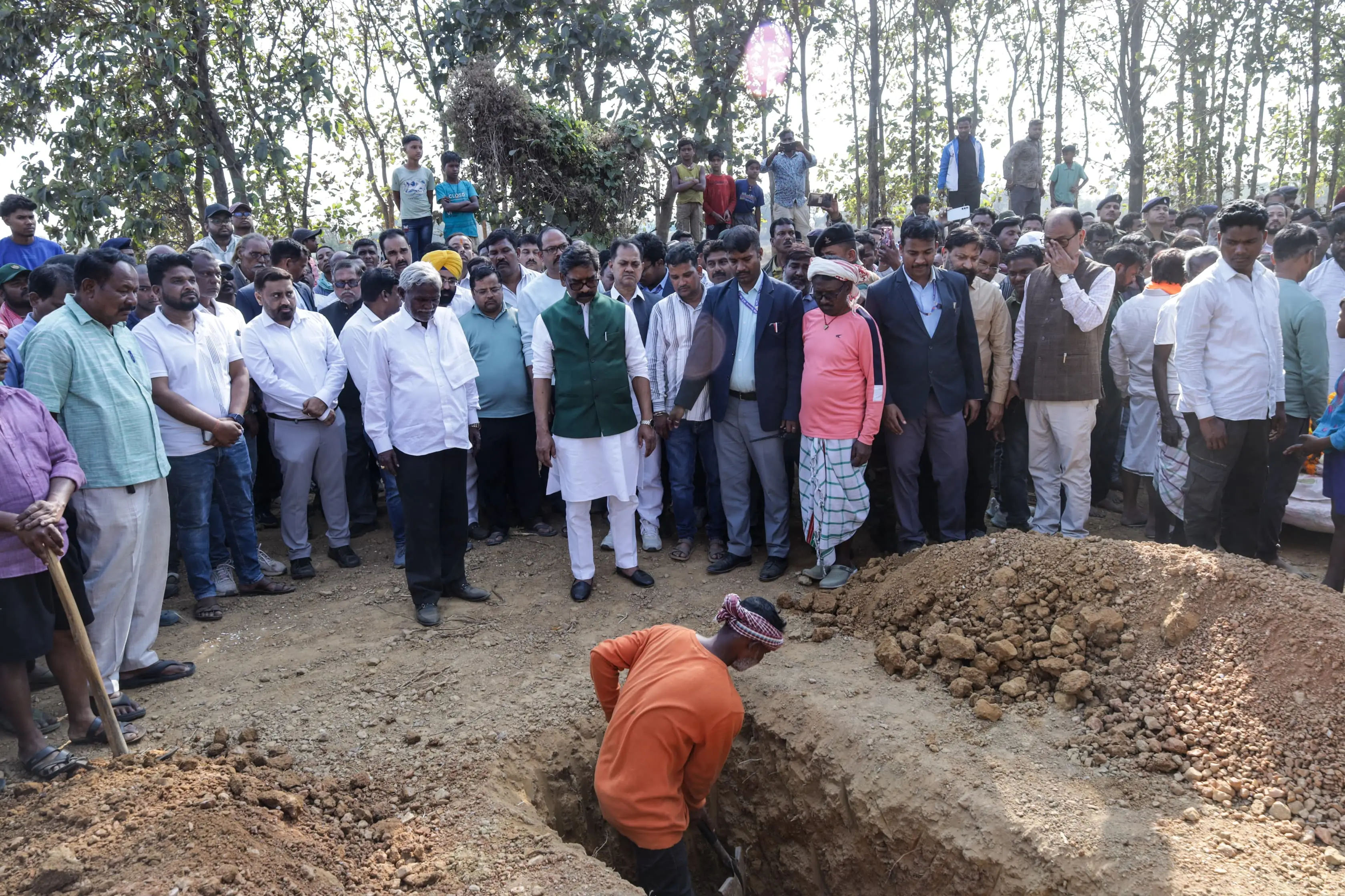 Chief Minister Shri Hemant Soren reached Jilingoda in Seraikela-Kharsawan district today, where he expressed deep sorrow and condolences on the untimely demise of Veer Soren, grandson of former Chief Minister Shri Champai Soren. The deceased Veer Soren was the eldest son of Shri Babulal Soren. The Chief Minister paid tribute to the deceased Veer Soren by offering a wreath on his mortal remains and expressed his deep condolences to the bereaved family. He met former Chief Minister Shri Champai Soren, Shri Babulal Soren and other family members and consoled them. The Chief Minister prayed to Marang Buru to grant peace to the departed soul and give strength to the grieving family to bear this unbearable sorrow.