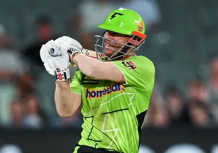 Warner walked in amid early collapse, shouldering the chase alone at first. What ensued was batting brilliance: 49 balls, 92 runs, nine sixes, seven fours. He toyed with the bowling, employing ramps, scoops, and lofted covers to keep Thunder alive. By the 15th over, victory seemed imminent.