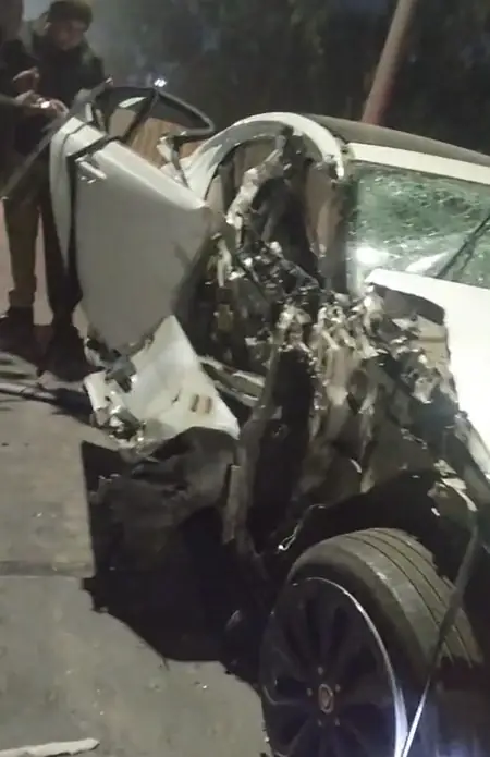 Heartbreaking scenes played out in Noida’s Sector-49 after a Jaguar luxury car rammed into a canter truck amid a high-speed overtake, killing 19-year-old Falak Ahmad instantly and critically wounding three others.