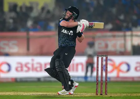 Conway departed after a fiery 44 from 23 balls (4 fours, 3 sixes), but not before partnering Seifert for a 100-run blitz in 8.2 overs. Seifert’s 62 off 36 (7 fours, 3 sixes) showcased composure amid chaos, etching this as NZ’s quickest century vs India and the joint second overall in T20Is against them.