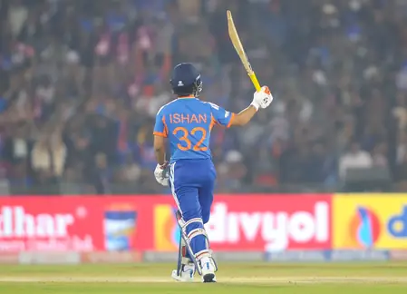 Explosive batting from Ishan Kishan lit up Raipur as India clashed with New Zealand in T20I cricket. The 76-run blitz off 32 balls, laced with 11 fours and 4 sixes, saw Kishan script history as the first Indian non-opener to score 50+ in powerplay (56 off 23).