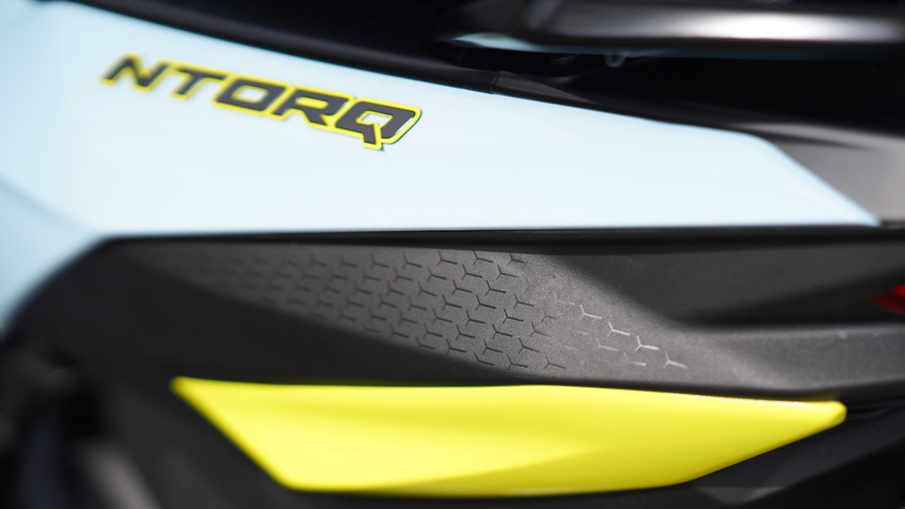 The scooter’s design is inspired by stealth aircraft, evident in its multi-point projector headlamps and sporty tail lamps. Aerodynamic winglets and jet-inspired vents enhance its aggressive stance, complemented by a signature muffler sound and naked handlebars. Color-matched alloy wheels and sport-tuned suspension further contribute to its dynamic profile, while the signature T tail lamp and gaming console-inspired TFT display add a touch of modern flair. The scooter incorporates TVS SmartXonnect, offering over 50 features through its high-resolution TFT cluster, including Alexa and smartwatch integration, turn-by-turn navigation, vehicle tracking, and the last parked location. Additional features include call/message/social media alerts, two ride modes, OTA updates, custom widgets, and a 4-way navigation switch.