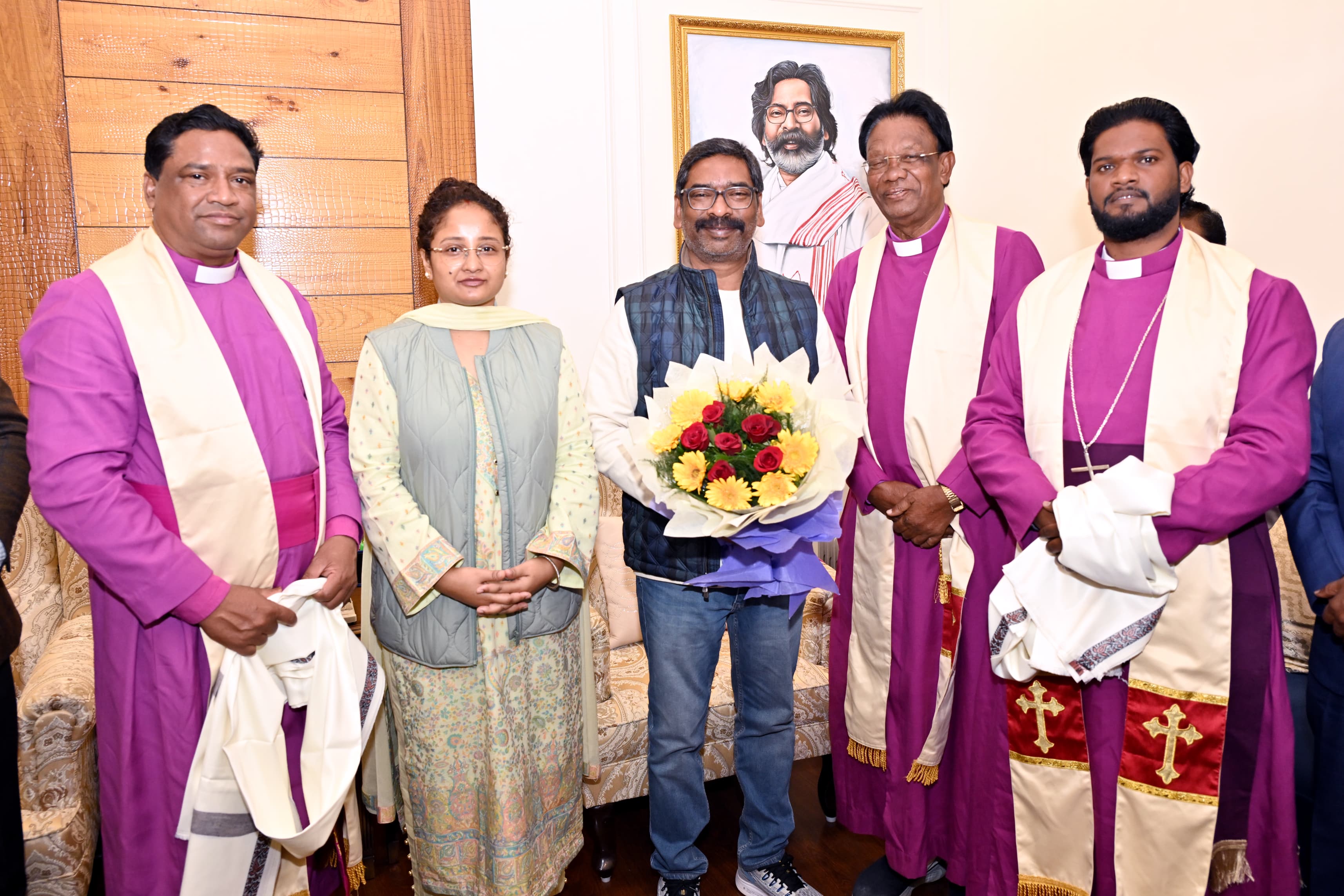 In Ranchi, leaders and youth leaders from various churches located in Ranchi district paid a courtesy visit and conveyed their Christmas greetings to Chief Minister Shri Hemant Soren. The Chief Minister also extended heartfelt blessings to everyone for this festival.